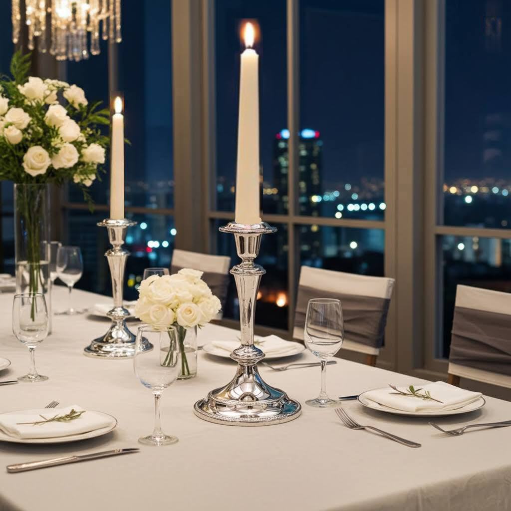 Bestil din lysestage i pletsølv i dag og bring lys og elegance ind i dit hjem! Glem ikke at tjekke vores lejeaftaler for lysestager til dit næste arrangement.